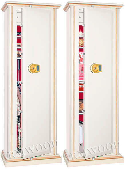 Элитный универсальный оружейный и личный (офисный) сейф с отделкой натуральным деревом. Окрашенное дерево (по каталогу RAL) с патинированием. Возможны различные цвета окраски и патинирования. Сейфы полностью удовлетворяют требованиям МВД к хранению оружия. Может использоваться как оружейный либо личный сейф.