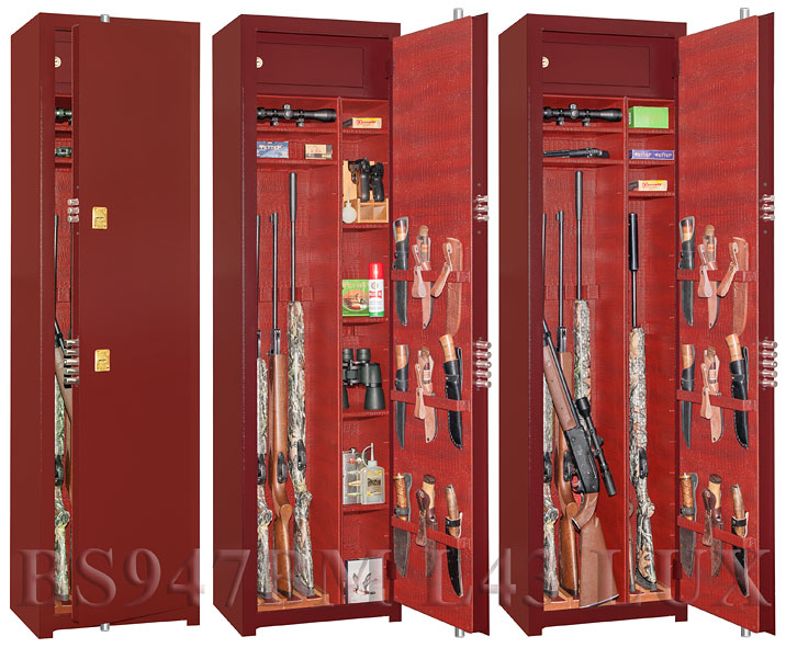 Внутри широкой области две съёмные полки с регулируемой высотой установки, а также деревянные нижние и верхние фигурные ложементы на 4 ствола. Также в широкой области имеется роликовый ложемент-зажим (производства Германии) с регулируемой высотой установки. Этот ложемент может быть использован для хранения в широкой области пятого ствола либо для дополнительной боковой фиксации оружия с оптикой.