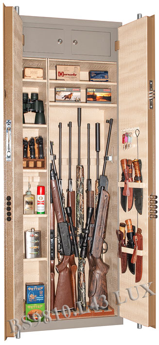 Ружья в сейфе можно хранить как в широкой, так и в узкой области. Сейф дополнительно может быть укомплектован пистолетными ложементами (деревянными либо пластиковыми). Внутренняя поверхность одной из дверей сейфа позволяет хранить на ней ножи, шомпола, связки ключей и т.п.