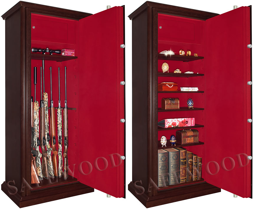Элитный взломоогнестойкий сейф с отделкой натуральным деревом. Полностью удовлетворяют требованиям МВД к хранению оружия. Универсальный сейф, может использоваться как оружейный сейф либо как личный (офисный) сейф. Вся внутренняя поверхность сейфа имеет престижное мягкое покрытие флокированием бархатом. Полная внутренняя мягкая отделка защищает предметы хранящиеся в сейфе от контакта с металлом, царапин, повреждений и т.п. Сейф сертифицирован на устойчивость к взлому – 1 класс. Умеренная огнестойкость – приблизительно 20Б. Корпус имеет двойные стальные стенки, между которыми находится специальный наполнитель. Металлические детали сейфа имеют гигиенически-безопасное, коррозионно-стойкое полимерно-порошковое покрытие на основе материалов производства ЕС. В отличие от других сейфов с отделкой деревом, сейфы Safewood являются Взломоогнестойкими сейфами.
