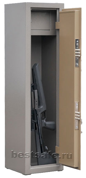 Шкаф имеет внутреннее запираемое отделение. Свободное пространство между внутренним отделением и задней стенкой шкафа позволяет разместить в нем стволы, высота которых практически равна высоте шкафа. Дно металлического шкафа отделано ковролином.
