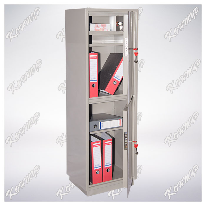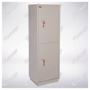 Шкаф представляет собой цельносварную металлическую конструкцию прямоугольной формы, соединение элементов которой выполнены методом сварки сплошным швом по контуру прилегания элементов. Горизонтальная перегородка делит шкаф на 2 независимых отделения, запираемых собственной дверью. В верхнем отделении шкафа располагается отсек ограниченного доступа (трейзер), запираемый на замок «почтового» типа и 1 съемная регулируемая по высоте полка, а в нижнем отделении – 1 съемная регулируемая по высоте полка.